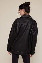 Step out in style with the Dugout Leather Bomber, a playful twist on the classic oversized jacket. Crafted from sleek faux leather, it features a chic collared neck and long sleeves with button details. The front zipper lets you zip up for warmth or wear open for a relaxed vibe. With double side pockets, it's perfect for stashing essentials while keeping your hands cozy. This jacket effortlessly combines comfort and cool for your everyday adventures.