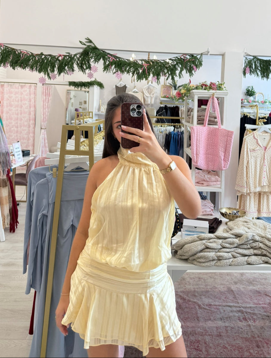 Capture the magic of golden light in this striking dropwaist dress that commands attention. The cinched waist creates an hourglass silhouette while the flowing skirt moves with confidence and grace. Pair it with a bold neck tie to elevate the look—this dress refuses to blend in. Perfect for those who dare to make a statement, whether you're heading to an upscale event or turning heads at an evening out. Timeless elegance meets modern edge in every wear.