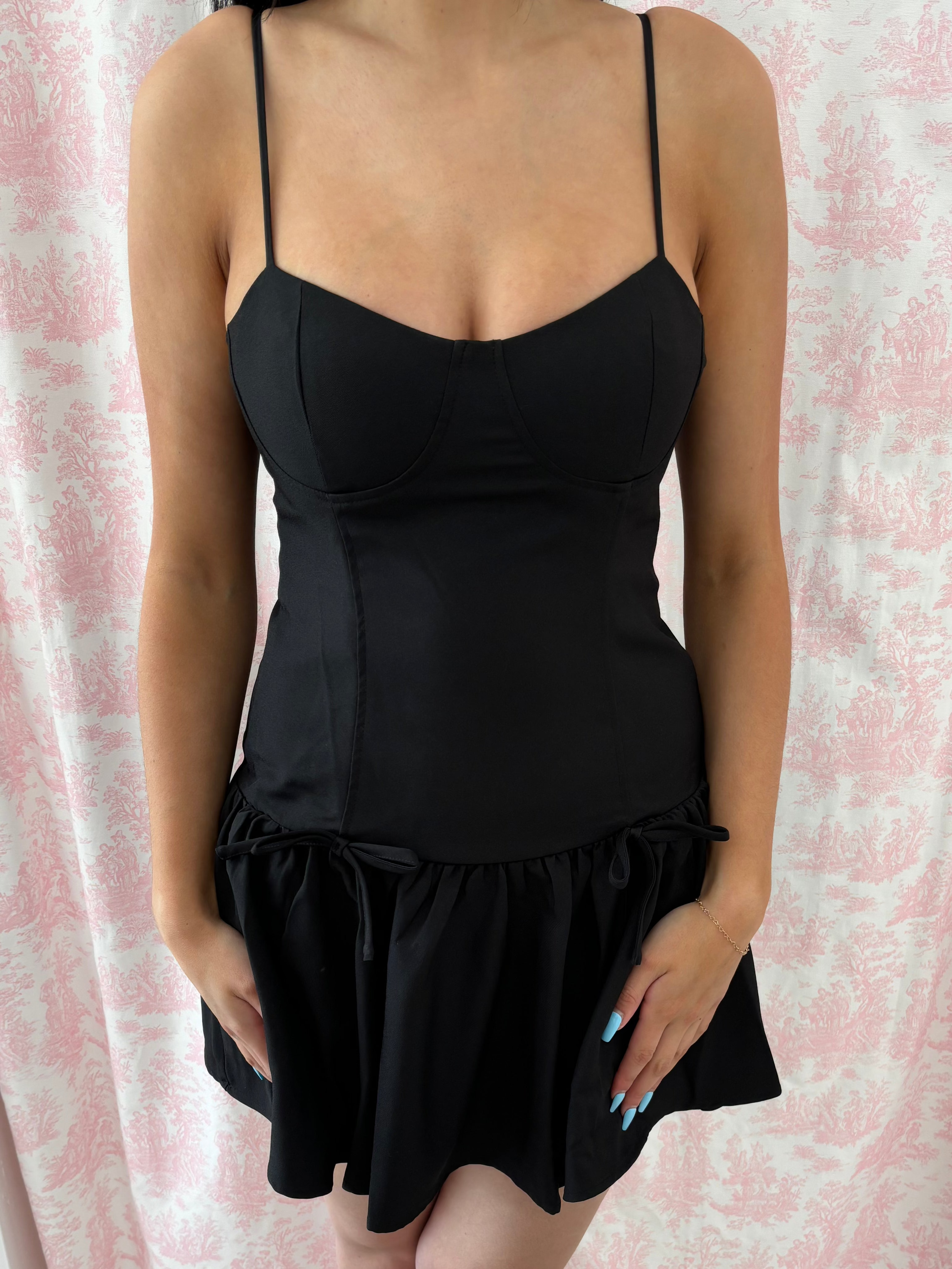 The Midnight Mini Dress is your go-to for effortless style day or night. Its flattering drop waist and delicate spaghetti straps create a chic silhouette that pairs perfectly with heels for evening glam or sneakers or sandals for a casual daytime vibe.