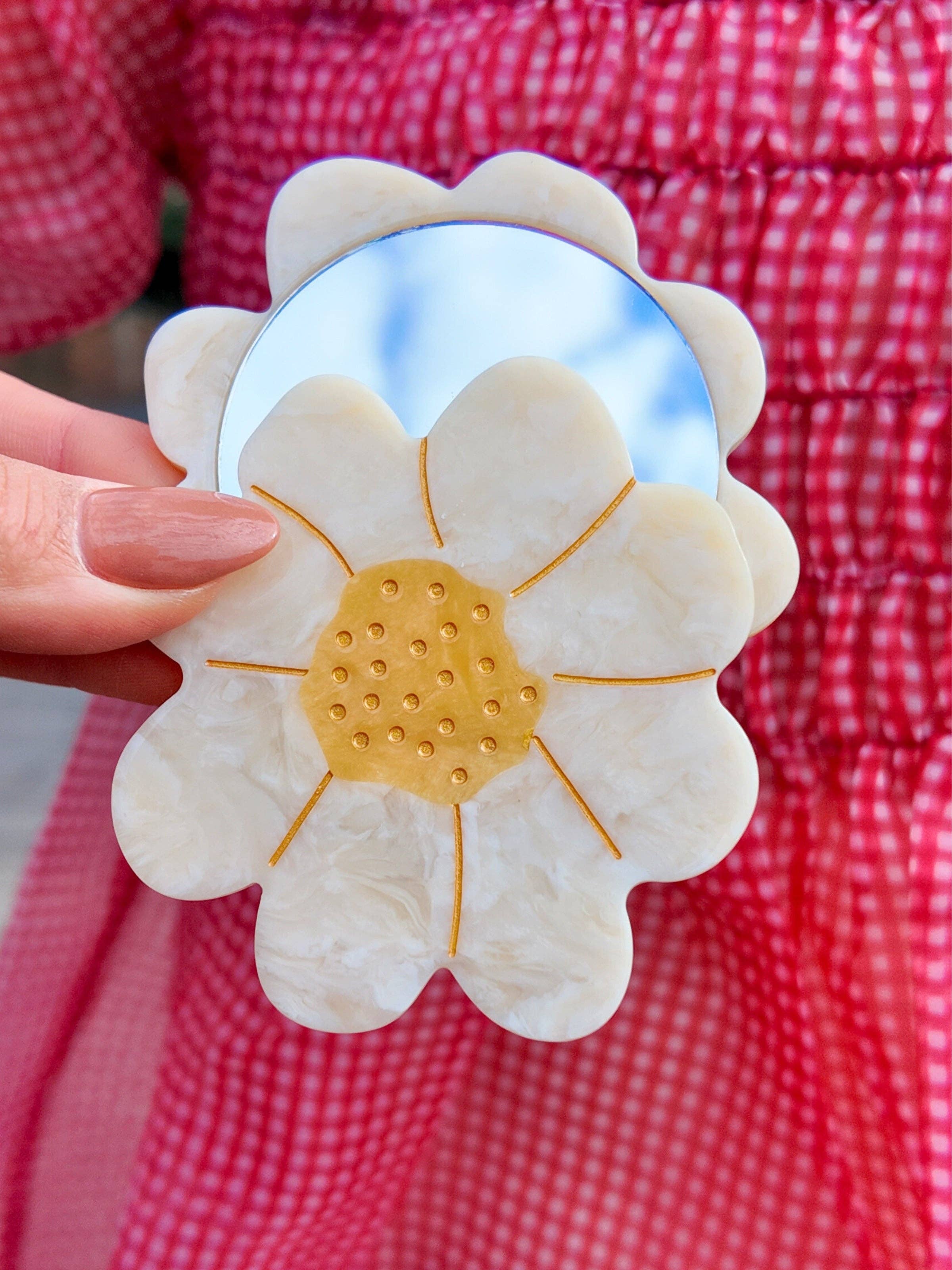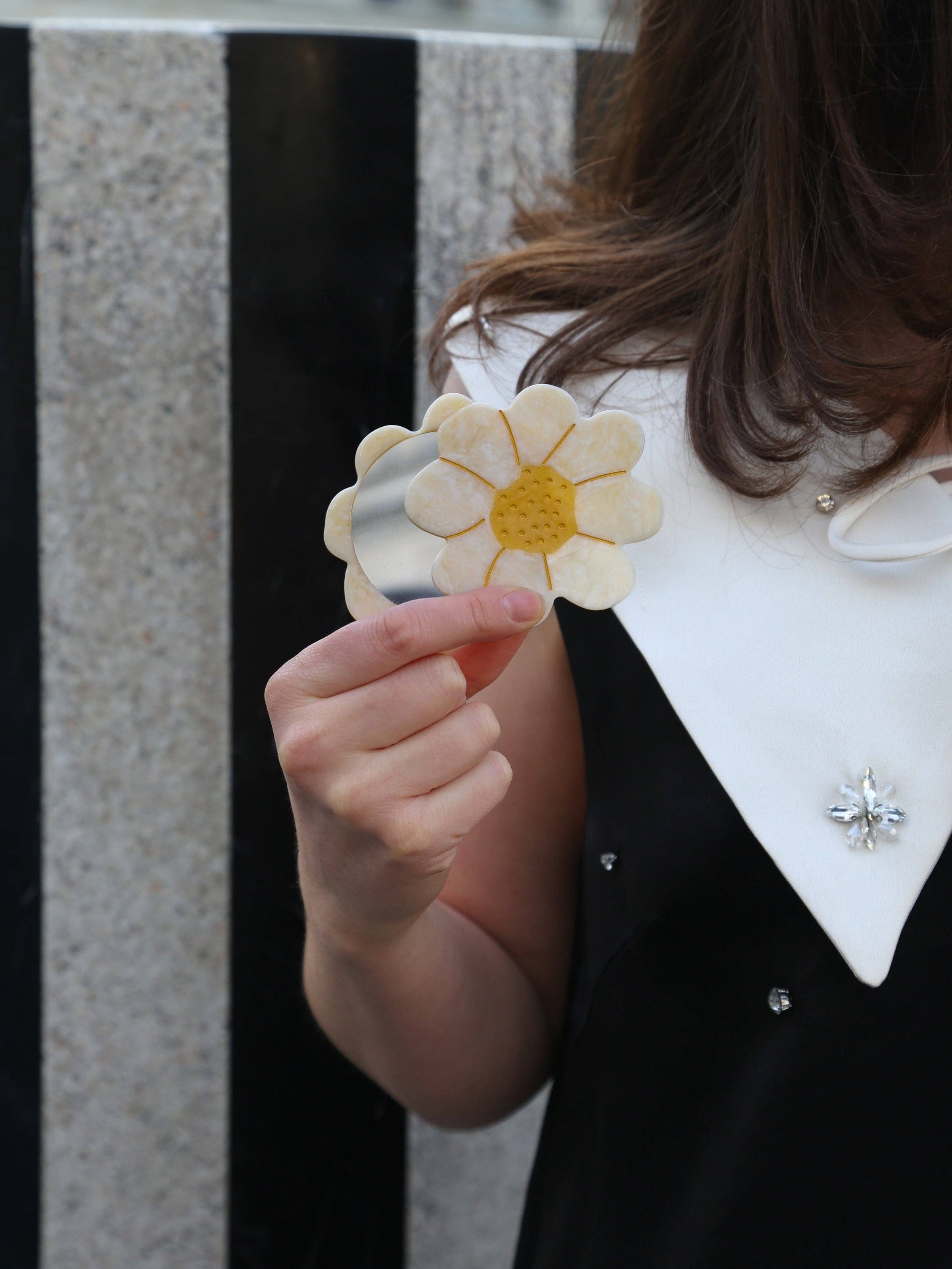 Hand-painted Vintage Daisy Compact Mirror | Eco-Friendly