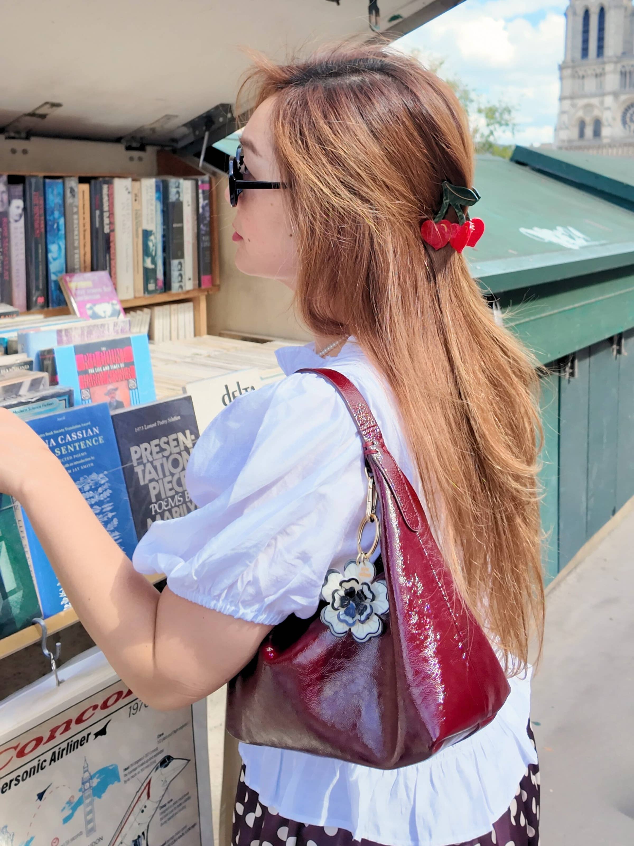 Hand-painted Cherry Hearts Hair Claw Clip | Eco-Friendly