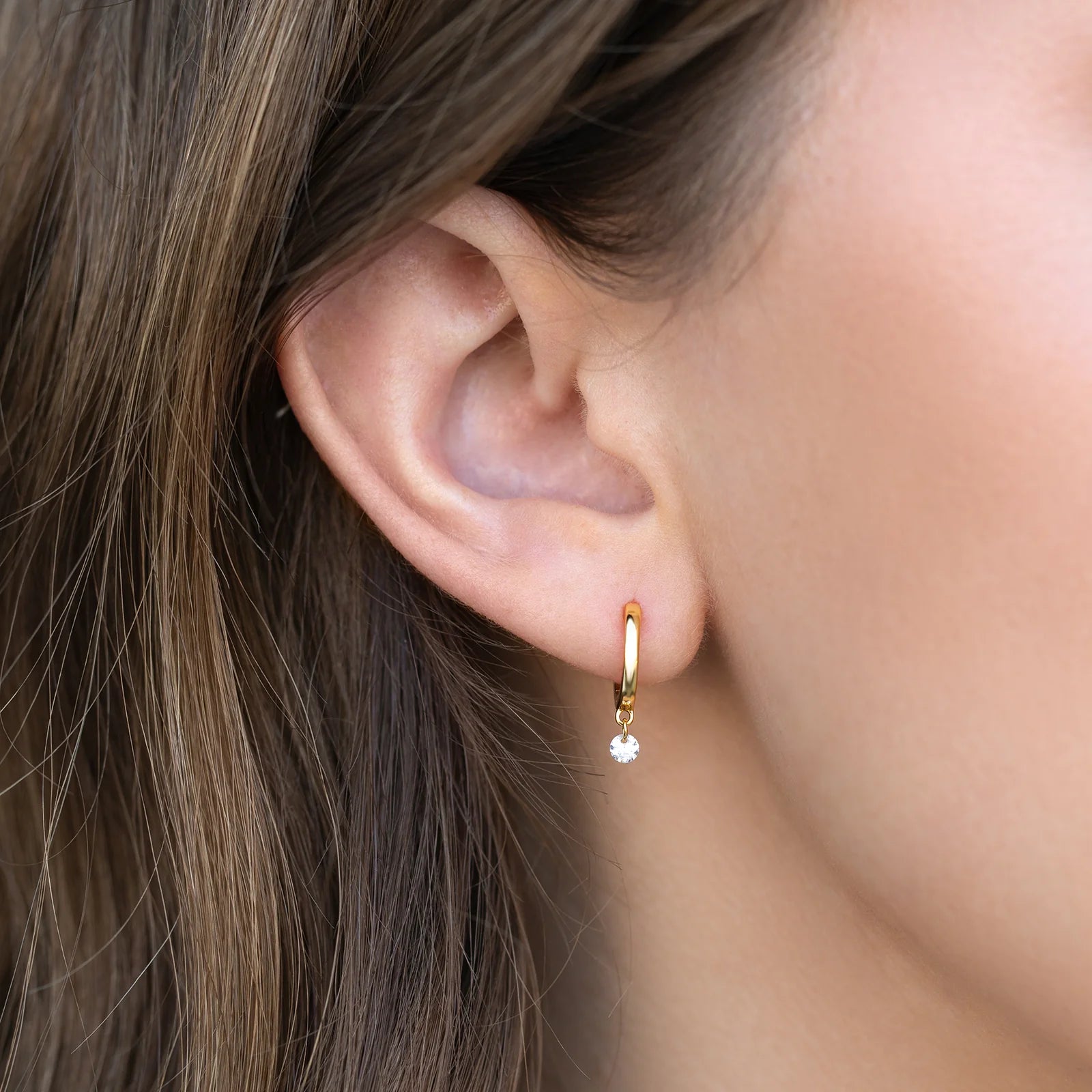 Add a touch of sparkle to your day with these 18k gold-plated Dew You Hoops! Crafted over brass and sealed with a protective coating, they shine bright without the fuss. Adorned with shimmering cubic zirconia stones, these petite 1cm hoops with a slim 2mm width are perfect for your girls' crew — effortless charm that’s always on point.