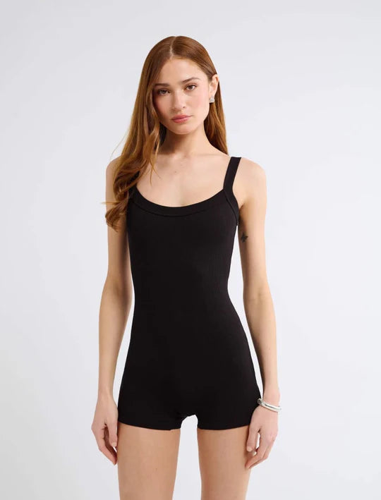 Introducing the must-have for the girl on the go: the Rumored Sunday Onesie. With its wide binding neck and armhole trim, as well as heavy weight rib fabric, this onesie offers ample stretch and compression for a sleek, sculpted look. Perfect for pilates, coffee dates, and errands.
