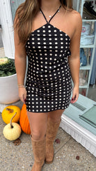 Make a bold statement in this playful polka dot dress that's equal parts fun and fabulous. The high neckline offers sophisticated coverage up top, while the daring open back creates an unexpected twist that'll have everyone asking for the designer. Perfect for turning heads at parties, date nights, or whenever you want to feel like the main character. This dress proves that classic polka dots never go out of style—they just get more daring.