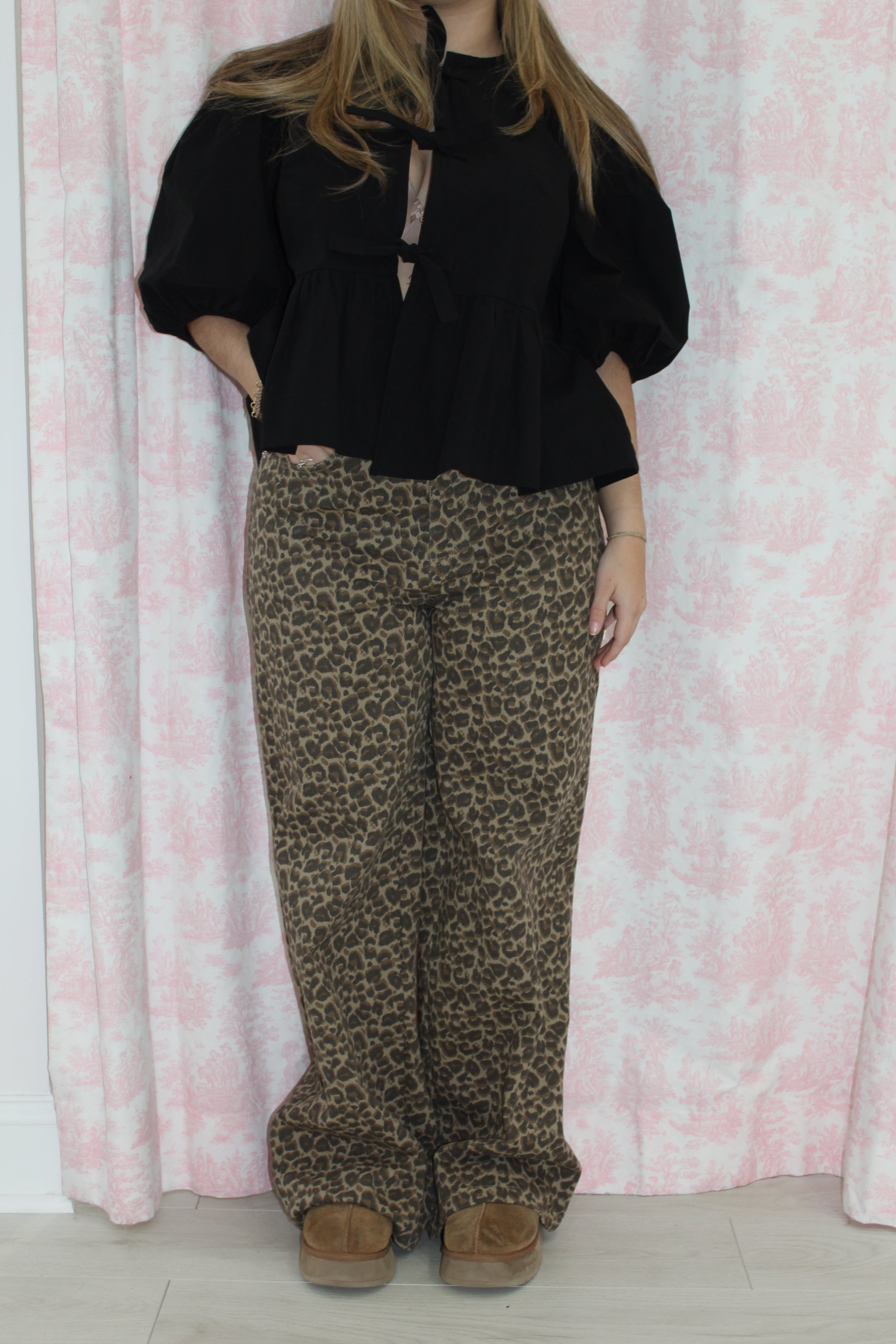 Unleash your wild side with our High Waisted Wide Leg Animal Print Jeans. Made with comfortable cotton fabric, these full-length jeans are perfect for making a statement. Show off your unique style with these playful and trendy leopard print jeans.