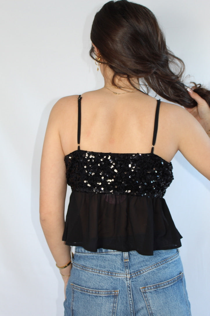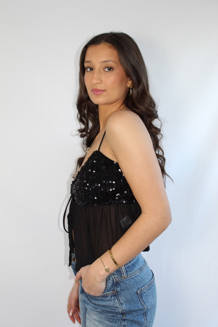 Black Sequins Tank Top