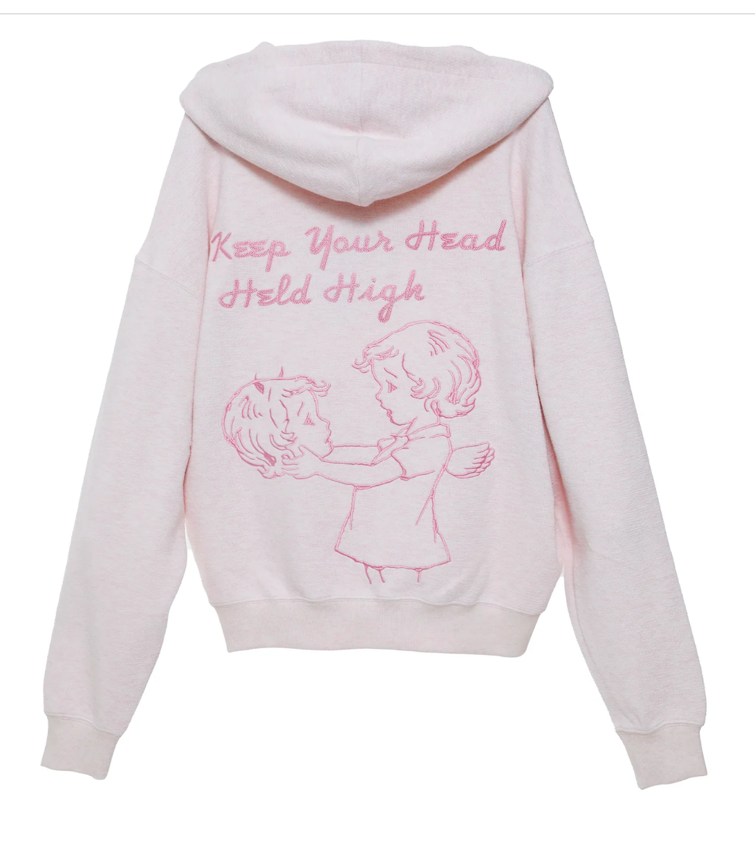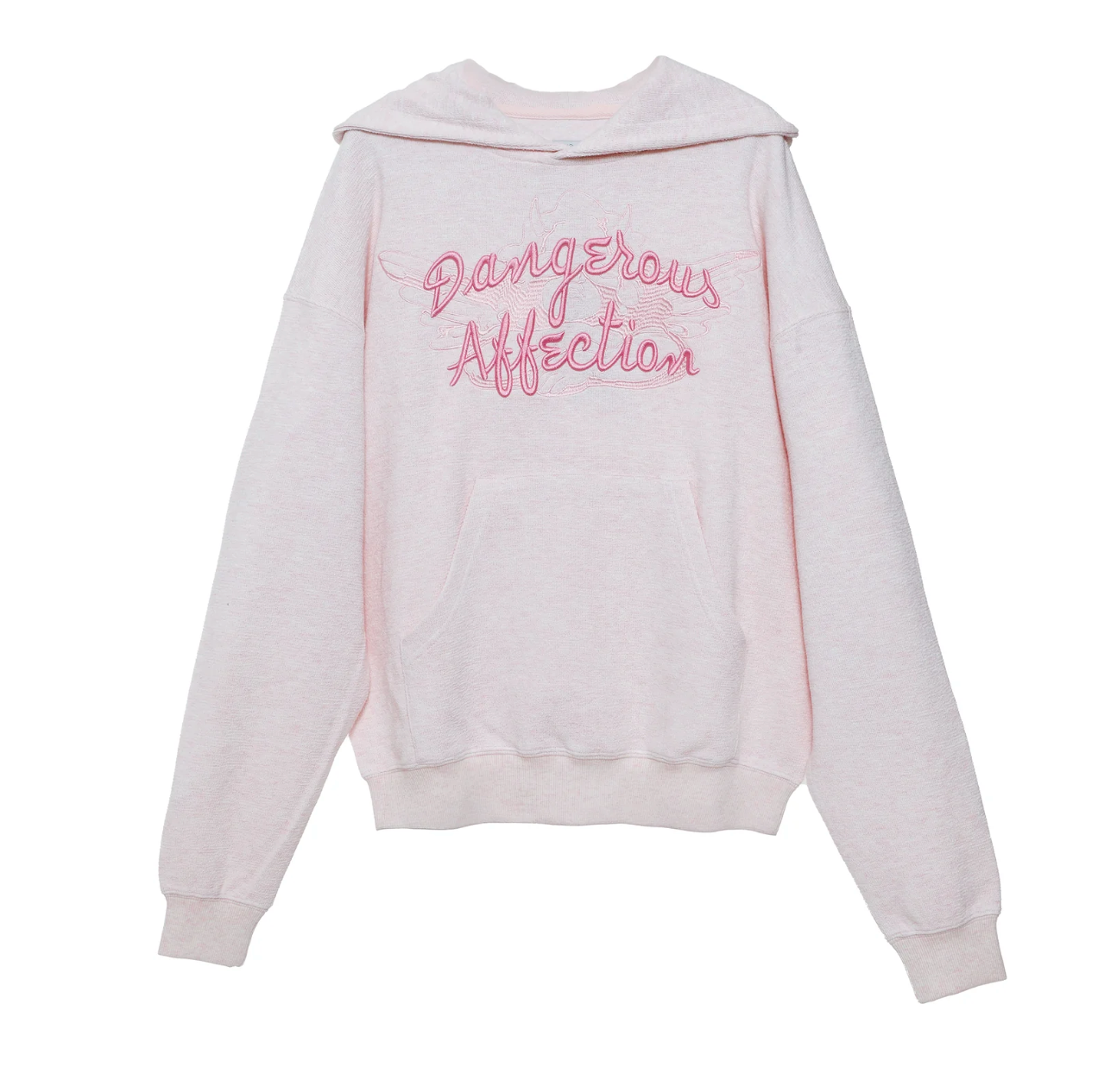 With bold yet understated "Dangerous Affections" text in a darker pink on the front and a subtle graphic on the back, this light pink hoodie offers a perfect mix of edge and elegance.