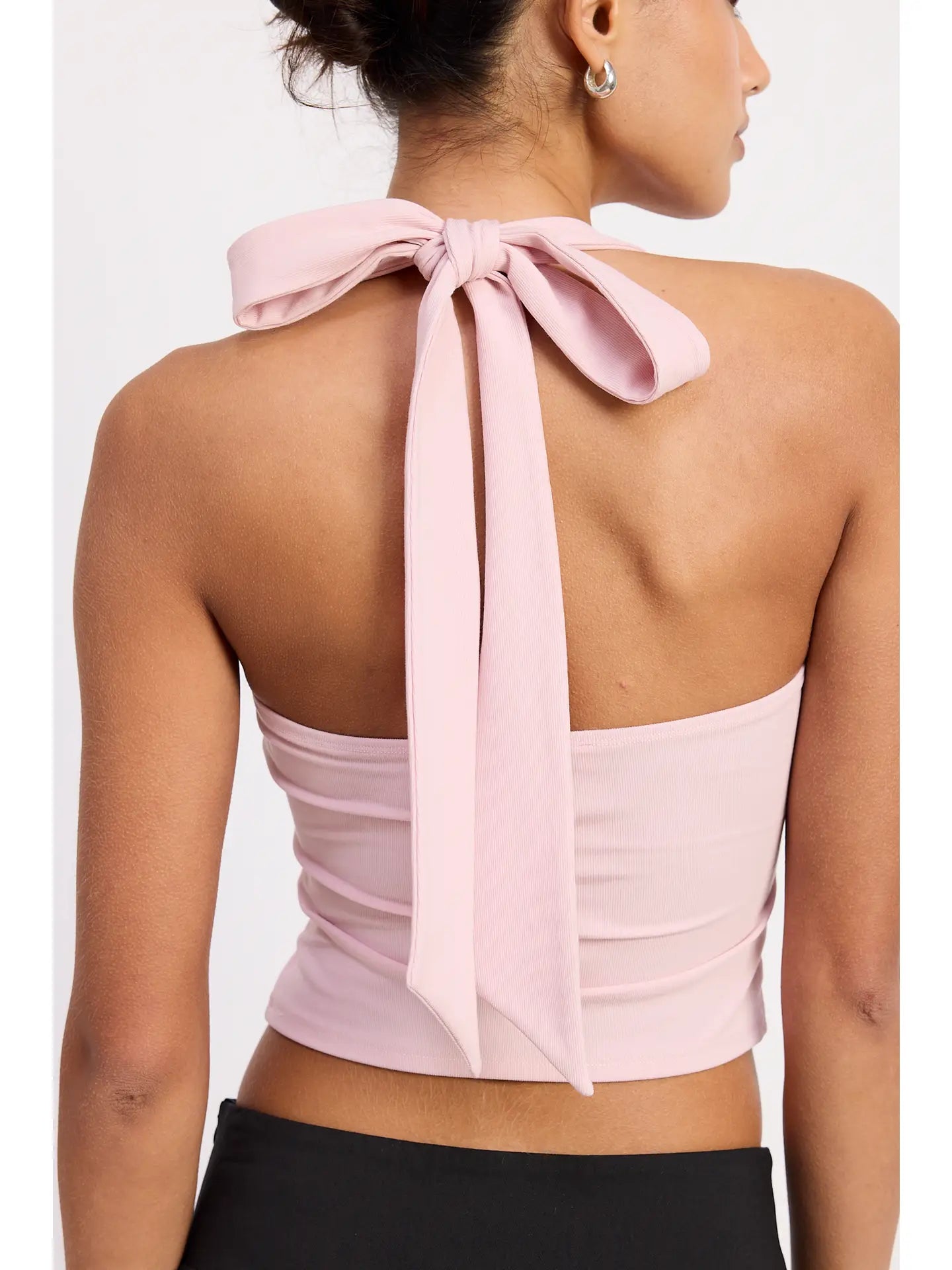 Turn heads effortlessly with this Halter Tie Back Knit Top featuring a daring front cutout. Its soft knit fabric hugs your curves while the adjustable tie back lets you customize your fit for all-day comfort. Perfect for warm days and nights when you want to play up your flirty side with a stylish twist.