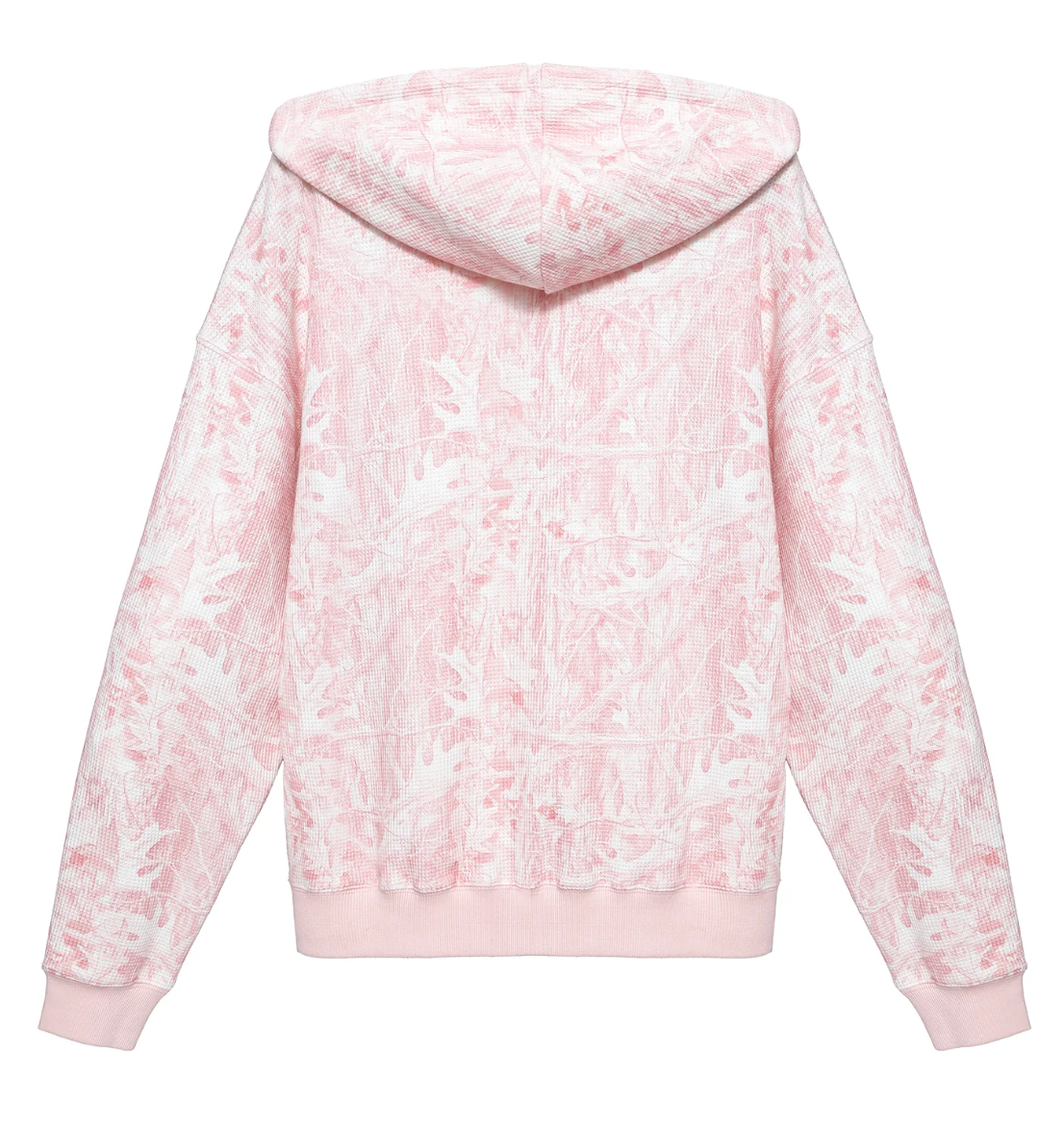 This pink camo print thermal hoodie features a bold pink patchwork design on the front, blending camouflage with a soft, feminine touch for a unique look.