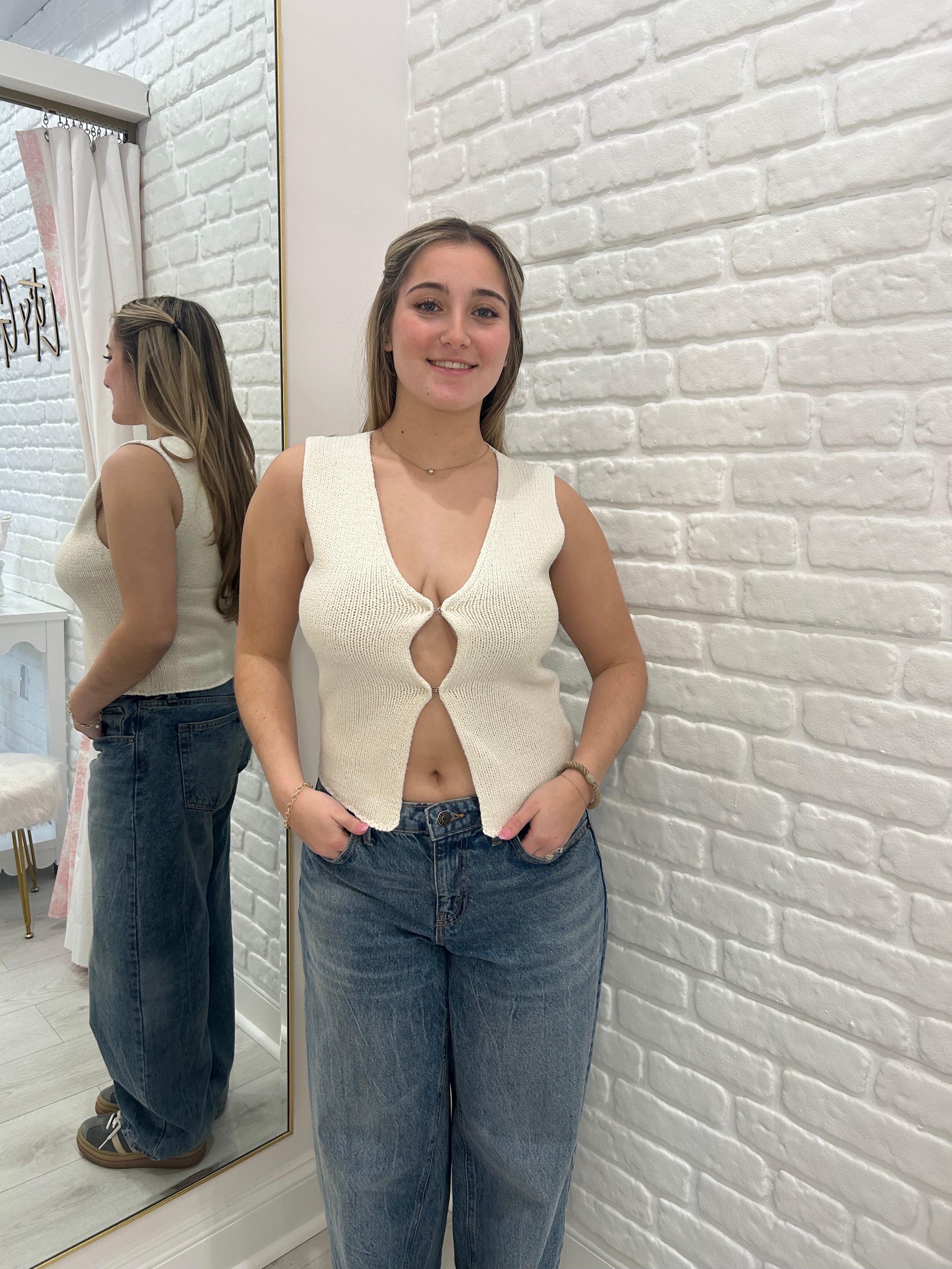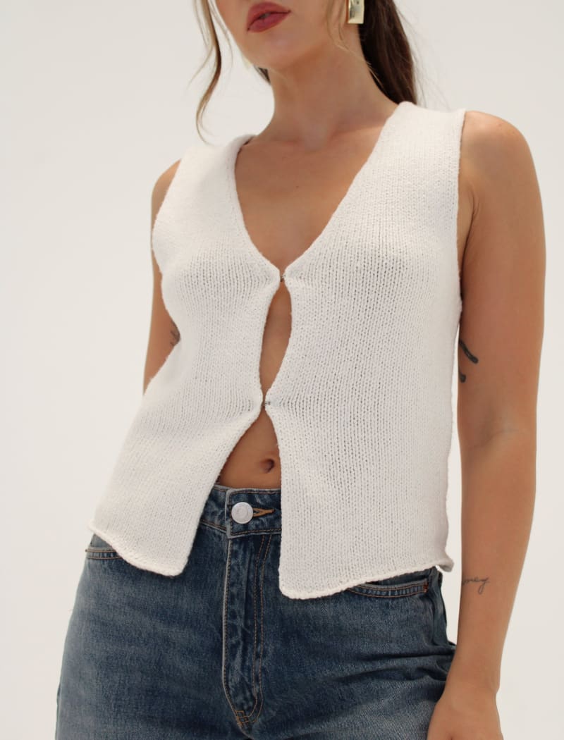 This sleek and sexy sleeveless vest offers ultimate versatility, perfect for year-round wear. With its minimal hook front fastening, you'll feel effortlessly chic while making a statement. A must-have for any wardrobe. Can be wore front or back facing!