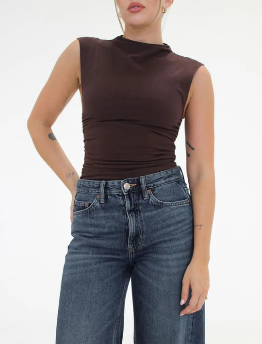 Introducing our Rumored Minimalist Top. Made with the softest peached fabric, this top boasts a mock neck for added style and ruched side seams for a flattering fit. Perfect for any occasion, this top will have everyone talking (and yes, the rumors are true - it's as comfortable as it looks!).