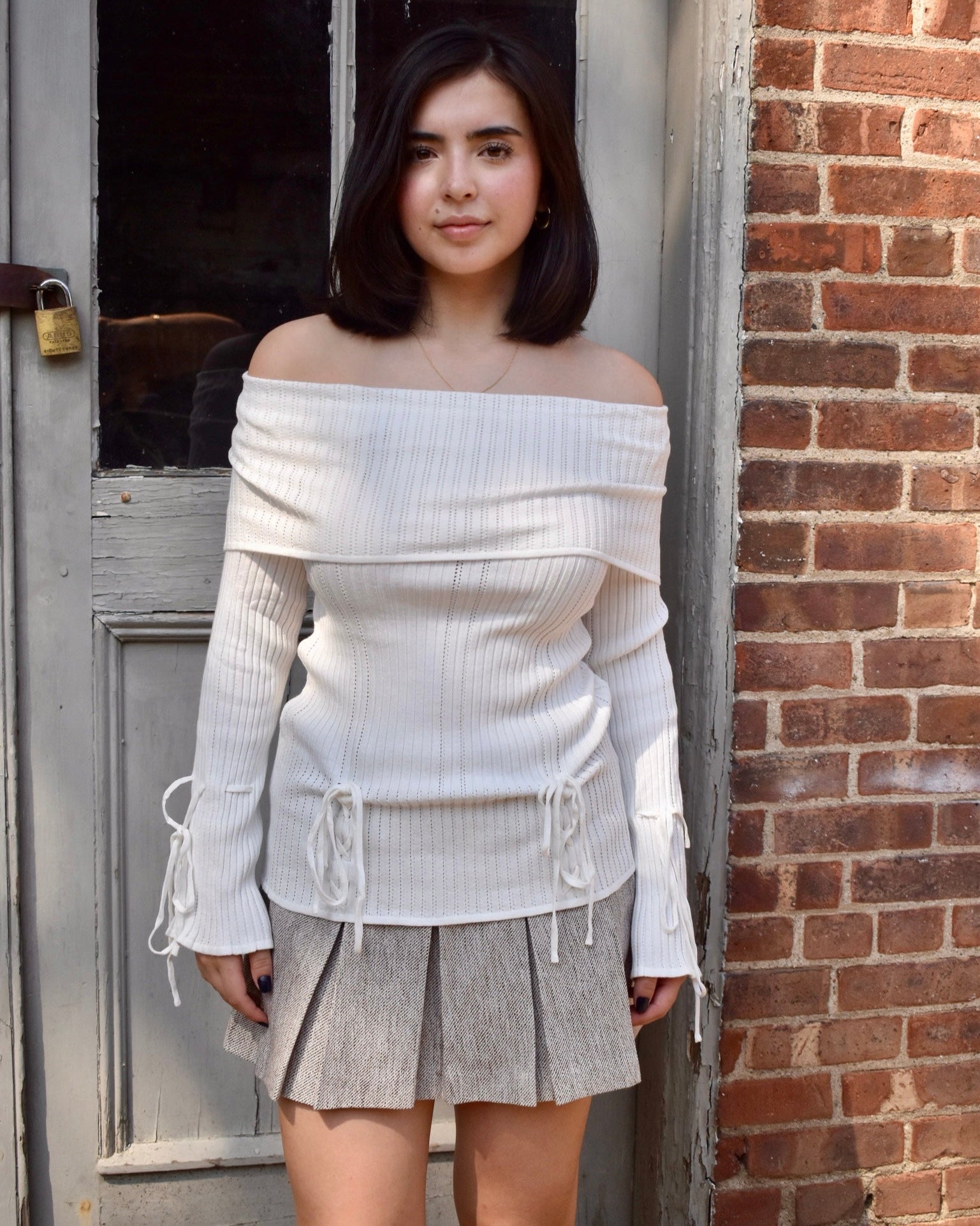 This playful off-the-shoulder sweater top combines cozy comfort with flirty tie details for a fun, feminine look. Made from lightweight fabric, it offers an easy, breezy fit perfect for layering or wearing on its own. Whether you're dressing up or keeping it casual, the Twilight Sweater Top adds a charming twist to your outfit.