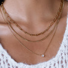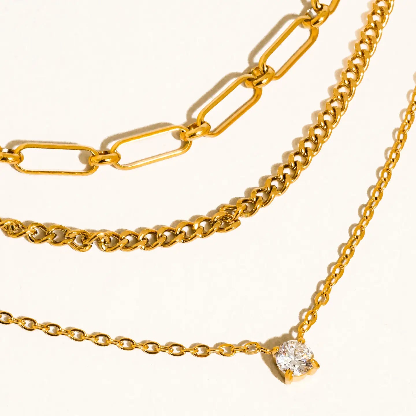 18K Gold Non-Tarnish Layered CZ Chain Necklace 18K Gold Plating Stainless Steel