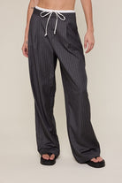 Elevate your look with these pinstriped suit pants that blend classic style with a twist of fun. The mid-rise fit pairs perfectly with an adjustable waist tie for a comfortable, customizable feel. Practical side pockets add a touch of casual ease, making these pants as versatile as they are chic. Perfect for turning heads at the office or out on the town!