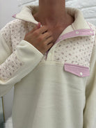 Embrace laid-back vibes with the Vintage Flower Cream Henley by Happy Camp3r. Featuring a charming button-style quarter zip, this top lets you adjust your look and comfort with ease. Its soft cream hue and vintage floral touches bring a playful spirit to your casual wardrobe, perfect for carefree days and happy adventures.
